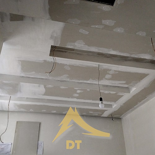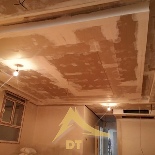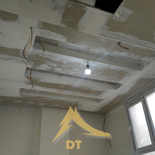 - برای بتونه کاری سقف کناف نیاز است که ابتدا درز پنلها با بتونه مخصوص کاملا پر شود و پس از نصب نوار درزگیر، مجددا سطح کار بتونه شود.