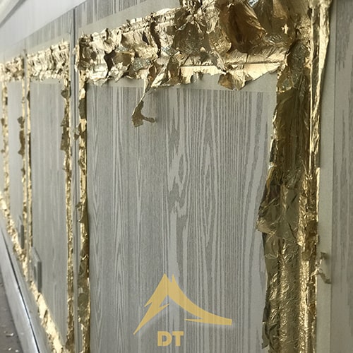 حتما تا به حال خانههایی را دیدهاید که طراحیهای پتینهشان دارای رنگ طلایی است. اینها رنگ نیستند، در واقع ورقههای طلا هستند که روی پتینهکاریهای برجسته یا غیر برجسته آمده و آن را طلایی رنگ میکنند.